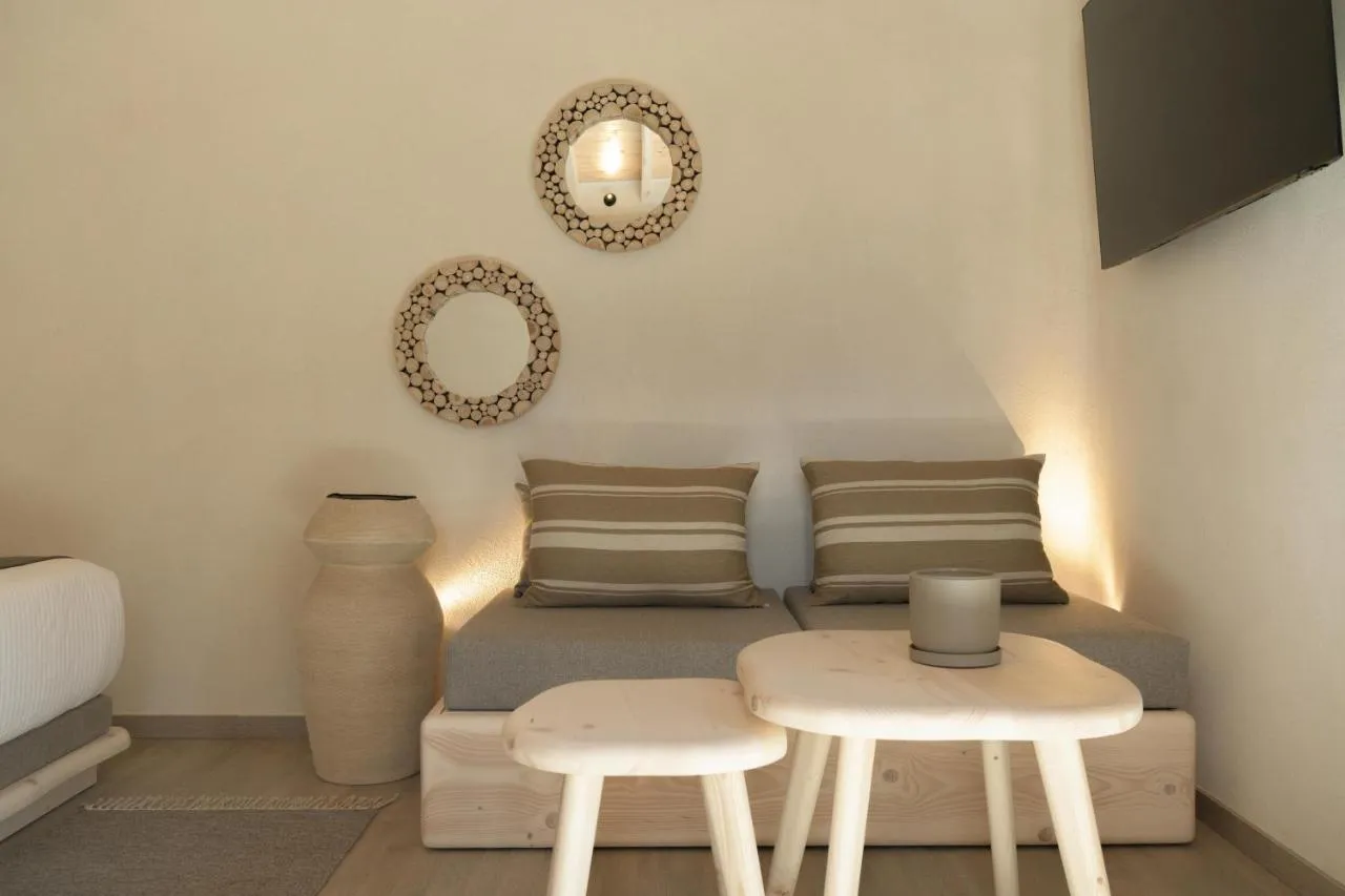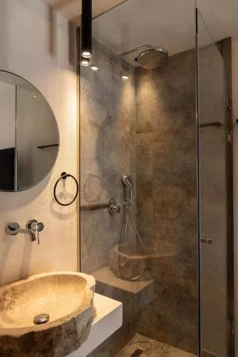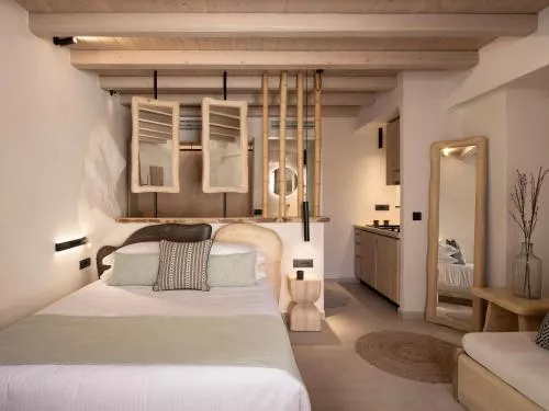 Dimensiuni: 31 mp Numar de camere: 6 camere This junior suite has a queen size bed and a kitchenette. The bathroom includes a spacious walk-in shower, with all the essential toiletries, towels and slippers provided. Guests of this suite have direct access to the shared pool and common terrace. Baie privată cu duș