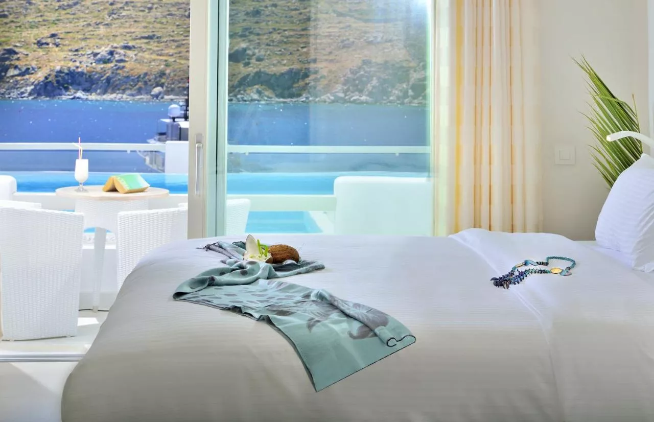 Suită Grand Myconian cu vedere la mare şi piscină comună în aer liber