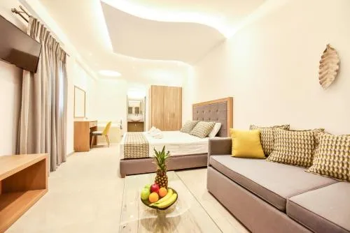 Queen Boutique Suites se află la 2,8 km de orașul Mykonos și la 3,4 km de plaja Paradise. Dispune de o piscină și oferă unități amenajate cu gust, care se deschid către o terasă și un patio cu vedere la piscină și grădină. WiFi gratuit este disponibil în toate unitățile.