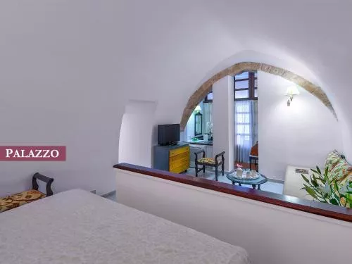 Dimensiuni: 55 mp Numar de camere: 1 camera This very spacious, 2-level suite features a spacious living room area, a WC and a balcony on the lower level, offering views to the medieval town of Rethymno.