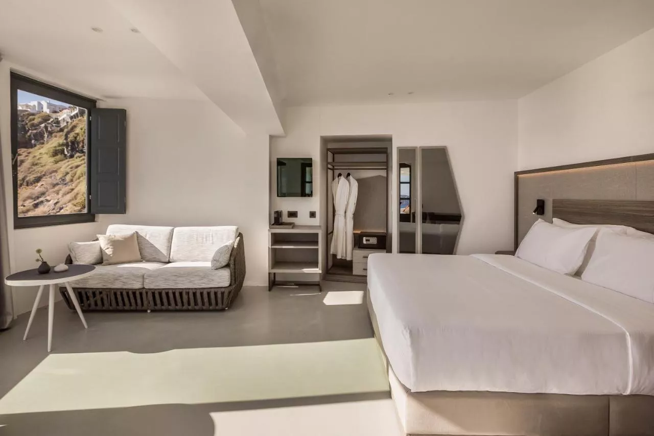 Dimensiuni: 40 mp Numar de camere: 4 camere Featuring a balcony with caldera and Aegean Sea views, this room has a queen size bed and separate living area. Baie privată cu cadă