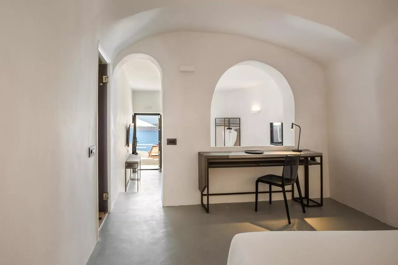 Cele 18 camere și suite sofisticate prezintă culori pământii, discrete și plăcute. Fiecare unitate luxos mobilată are o zonă de relaxare și o verandă comună cu vederi superbe spre Marea Egee.