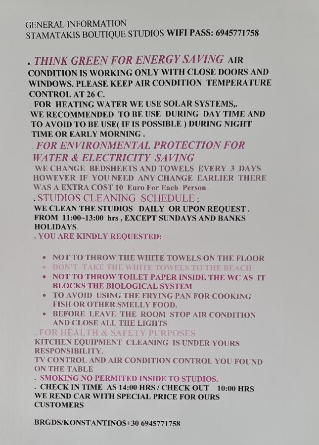 La Stamatakis Boutique Studios veți găsi o grădină spațioasă.