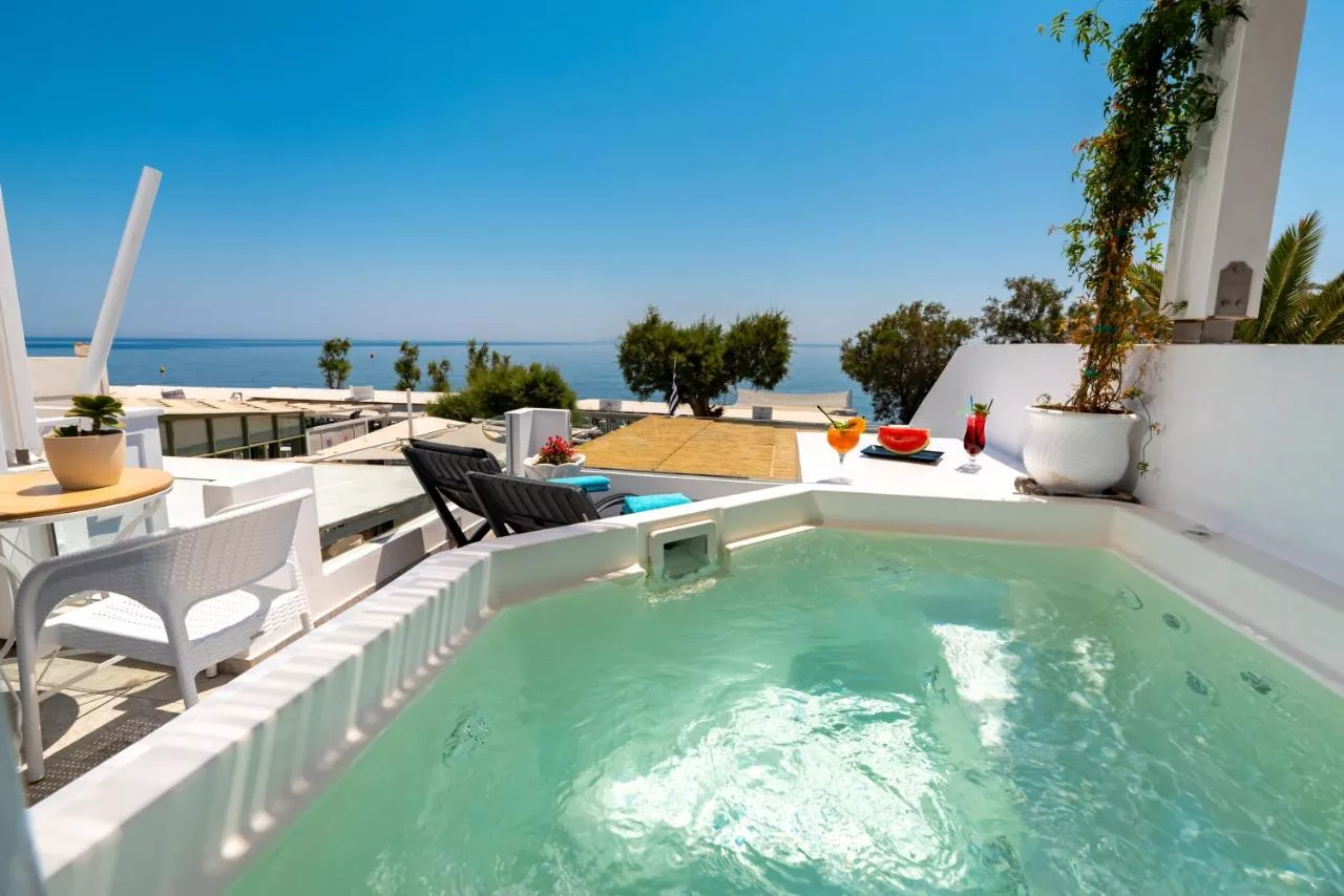 The suite features air conditioning, an electric kettle, a balcony with pool views as well as a private bathroom boasting a bath or a shower.