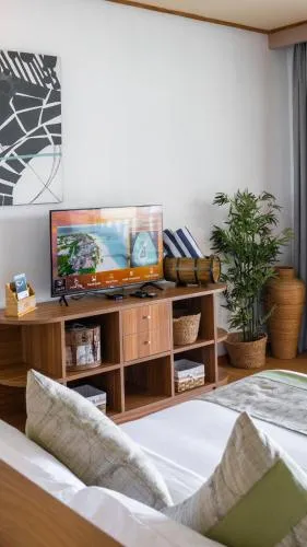 Baie: Halat de baie Prosoape Articole de toaletă gratuite Papuci de casă Uscător de păr Toaletă Duş Hârtie igienică Cadă Baie privată General : Seif Pardoseală de lemn sau parchet Ventilator Facilităţi de călcat Intrare privată Aer condiţionat Vedere: Vedere la mare Media/Tehnologie: TV cu ecran plat TV Telefon Canale prin cablu Servicii: Serviciu de trezire Zonă de living: Canapea Zonă de relaxare Exterior: Mobilier de grădină Terasă Patio Balcon Facilităţile camerei: uscător de rufe Priză lângă pat Mâncăruri și băuturi: Aparat pentru prepararea de ceai/cafea Minibar Dormitor: Lenjerie de pat Garderobă sau dulap Accesibilitate: Unitate situată integral la parter Bucătărie: Cană fierbător Produse de curățenie Distanțare fizică: Aer condiționat individual pentru fiecare cameră de la proprietate Curățenie și dezinfectare: Dezinfectant pentru mâini