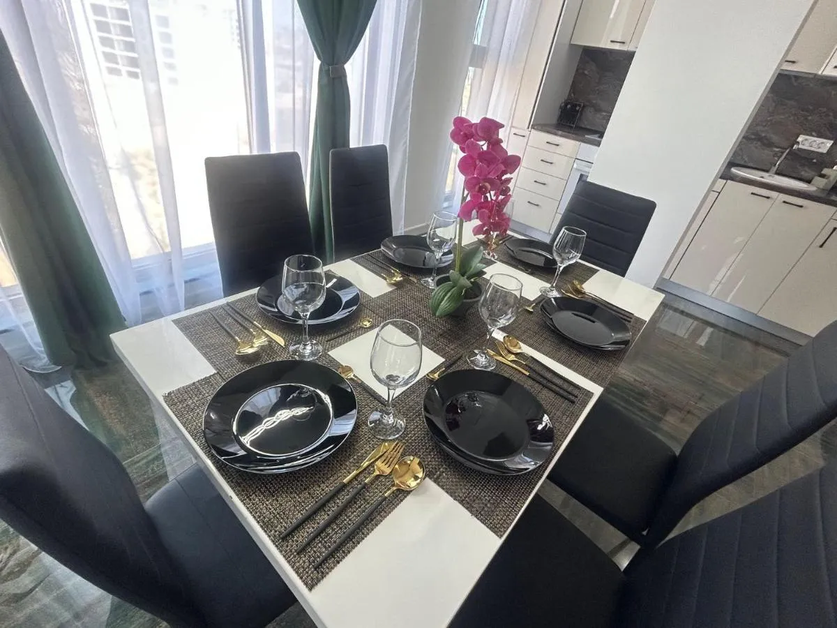 Ultra-modern amenajat și dotat, penthouse-ul are aer condiționat în living și în dormitorul principal, 3 televizoare smart, Wi-fi, aragaz și cuptor electric, hotă, frigider și mașină de spălat vase încorporate, veselă, uscător de păr, prosoape, lenjerie de pat și pături.