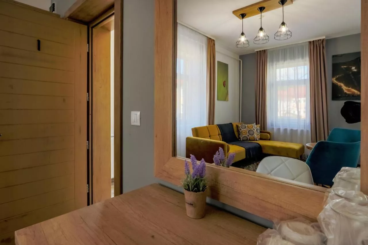 Bucătărie: Masă Frigider Cană fierbător Produse de curățenie Accesibilitate: Etaje superioare accesibile doar pe scări Media/Tehnologie: TV cu ecran plat TV Serviciu de streaming (ex. Netflix) Dormitor: Paturi extra lungi (> 2 metri) Lenjerie de pat Vedere: Vedere la munte Vedere la curtea interioară Vedere la grădină Vedere la oraș Zonă de living: Canapea Exterior: Mobilier de grădină Zonă de luat masa în aer liber Baie: Prosoape Articole de toaletă gratuite Papuci de casă Uscător de păr Toaletă Duş Hârtie igienică Baie privată Facilităţile camerei: Priză lângă pat Canapea extensibilă Mâncăruri și băuturi: Aparat pentru prepararea de ceai/cafea Minibar General : Intrare privată Încălzire Izolare fonică Plasă de ţânţari Curățenie și dezinfectare: Dezinfectant pentru mâini