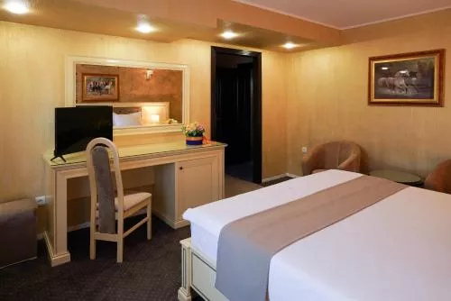 Baie: Halat de baie Prosoape Articole de toaletă gratuite Papuci de casă Uscător de păr Toaletă Hârtie igienică Cadă Baie privată Accesibilitate: Etaje superioare accesibile cu liftul Media/Tehnologie: TV cu ecran plat TV Telefon Canale prin satelit Servicii: Serviciu de trezire Zonă de living: Canapea Vedere: Vedere la piscină Vedere la oraș General : Facilităţi de călcat Intrare privată Încălzire Aer condiţionat Facilităţile camerei: Priză lângă pat Mâncăruri și băuturi: Aparat pentru prepararea de ceai/cafea Minibar Bucătărie: Frigider Cană fierbător Dormitor: Lenjerie de pat Garderobă sau dulap