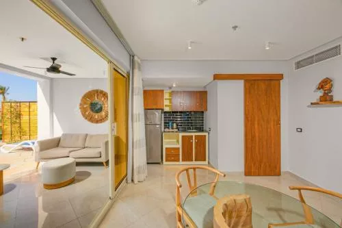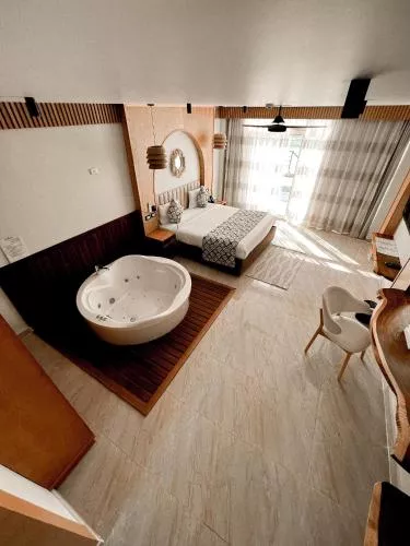 General : Seif Ventilator Pardoseală de gresie/marmură Încălzire Media/Tehnologie: TV cu ecran plat TV Telefon Canale prin satelit Zonă de living: Canapea Zonă de relaxare Zonă de luat masa Vedere: Vedere la piscină Exterior: Terasă Balcon Facilităţile camerei: Priză lângă pat Mâncăruri și băuturi: Aparat pentru prepararea de ceai/cafea Minibar Baie: Uscător de păr Cadă spa Duş bideu Hârtie igienică Cadă Bucătărie: Cană fierbător Dormitor: Garderobă sau dulap