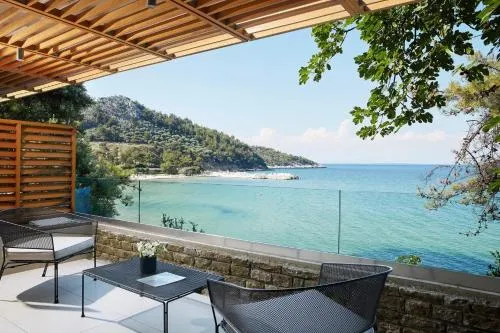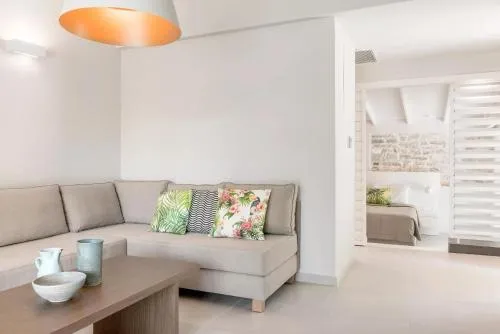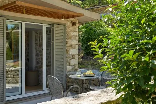 Dimensiuni: 42 mp Numar de camere: 5 camere Această suită este decorată cu piatră naturală și are tavan din lemn și living-dormitor în plan deschis. Include o baie elegantă cu duș. Oferă vedere la mare de pe terasa privată și din grădină. Printre alte facilități se numără: