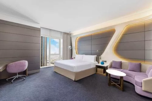 Cu 356 de camere pentru oaspeți, inclusiv 76 de suite, intră în noul V Hub situat la etajul șapte, cu o priveliște atrăgătoare spre Canalul Dubai și așază-te confortabil în camerele King deluxe, camerele twin și suitele de petreceri recent dezvăluite ale hotelului, pe paturile sale extravagante de tip king, cu vedere la Canalul de Apă din Dubai sau la Sheikh Zayed Road. Suitele semnătură ale hotelului - Sky Villa și Penthouse promit să fie refugiul suprem, cu stația de preparare a cocktailurilor și barul din suita proprie. Petrece la Penthouse-ul semnătură al V Hotel Dubai, situat la ultimul etaj, cu o priveliște uluitoare asupra Canalului de Apă din Dubai, cu o zonă pentru DJ, scenă pentru a-ți etala mișcările de dans, jacuzzi privat pentru a te relaxa și multe altele. Dansează printre nori în Sky Villa a V Hotel Dubai, locul perfect pentru petreceri memorabile.