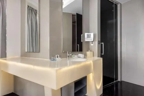Dimensiuni: 115 mp Numar de camere: 3 camere Providing free toiletries and bathrobes, this suite includes a private bathroom with a walk-in shower, a hairdryer and slippers. The spacious air-conditioned suite provides a flat-screen TV with cable channels, soundproof walls, a tea and coffee maker, a seating area as well as city views. Baie privată cu duș
