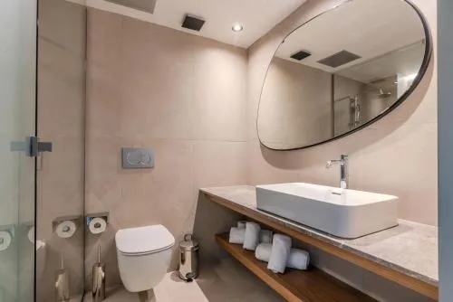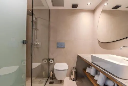 Baie: Halat de baie Articole de toaletă gratuite Papuci de casă Uscător de păr Toaletă Duş Hârtie igienică Baie privată Facilităţile camerei: Seif Fier de călcat uscător de rufe Facilităţi de călcat Priză lângă pat Pardoseală de gresie/marmură Garderobă sau dulap Produse de curățenie Izolare fonică Aer condiţionat Exterior/Vedere: Vedere la mare Vedere la punct de atracţie Media/Tehnologie: TV cu ecran plat TV Canale prin cablu Canale prin satelit Mâncăruri și băuturi: Mobilier de grădină Aparat pentru prepararea de ceai/cafea Frigider Servicii/Suplimente: Prosoape Lenjerie de pat