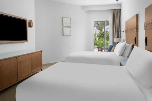 Înconjurat de palmieri, la doar 5 km de Aeroportul Sharm El Sheikh, DoubleTree by Hilton Sharks Bay Resort dispune de plajă privată, divertisment pentru familie și o gamă variată de activități de agrement și sporturi acvatice.