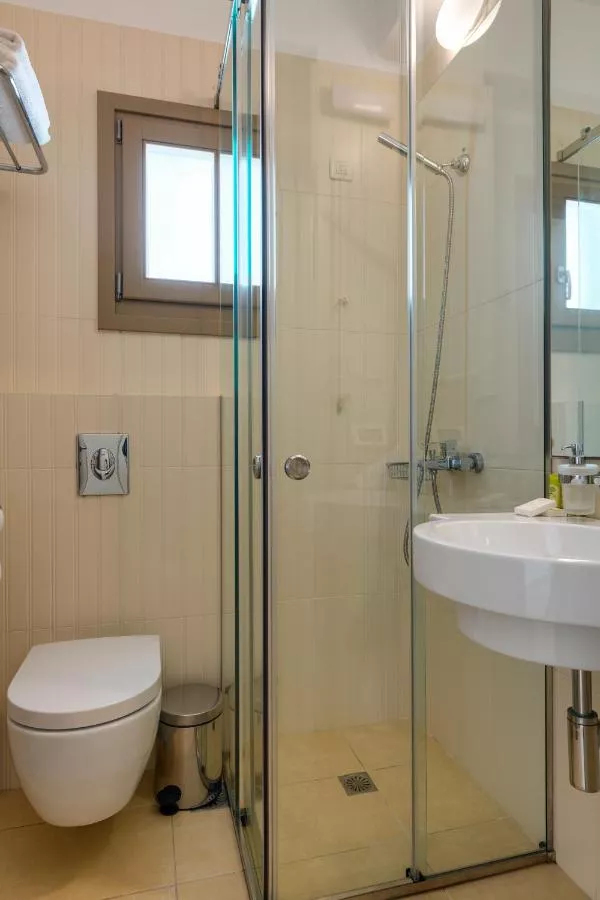 Τhis studio can accommodate up to 4 persons and children over 12 years old Baie privată cu duș