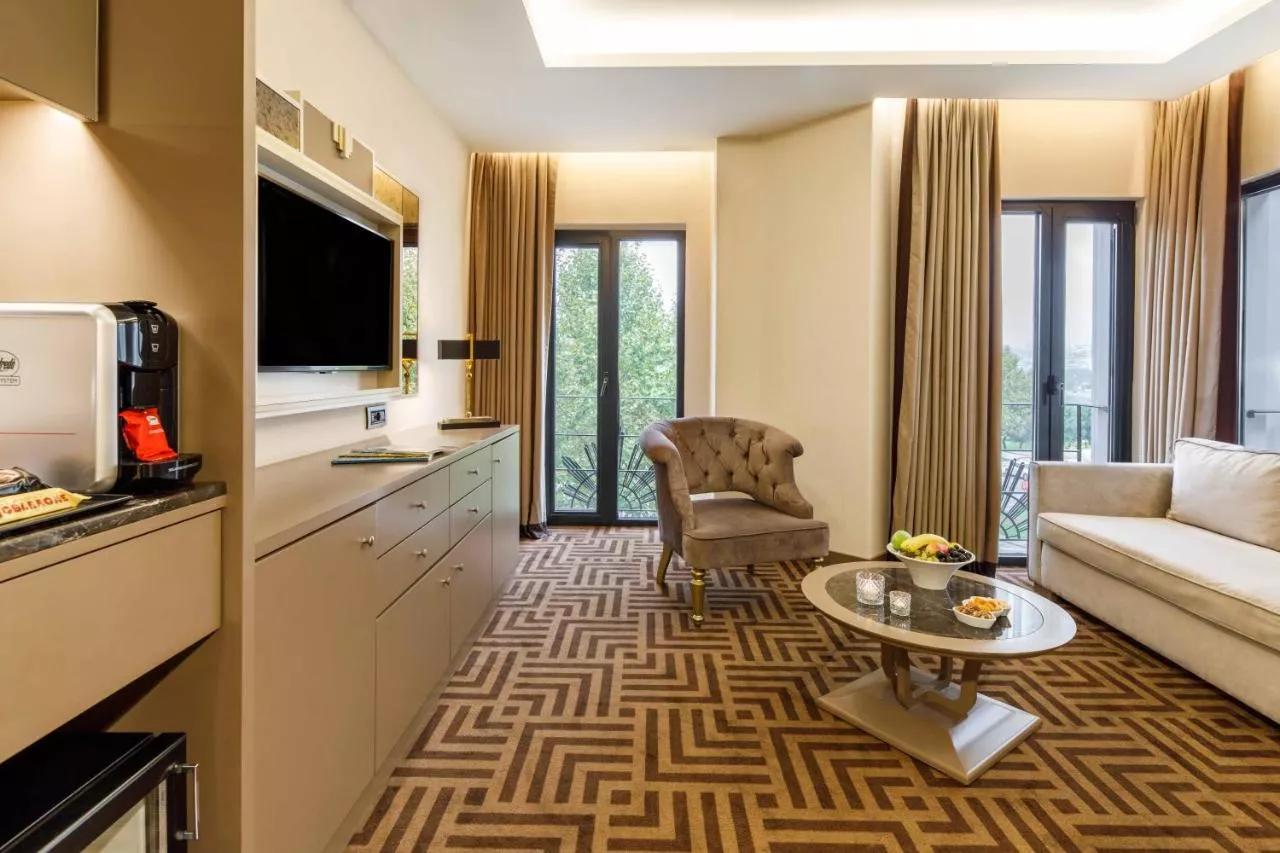 Dimensiuni: 55 mp Numar de camere: 1 camera This suite has a TV, minibar, electric kettle and tea/coffee maker, air conditioning and sea view.