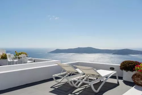 Kasimatis by La Perla - Exclusiv pentru Adulți, construit în stilul cicladic, se bucură de o locație privilegiată în vârful Imerovigli, cu vederi panoramice asupra Mării Egee Albastre și a insulei vulcanice Santorini.