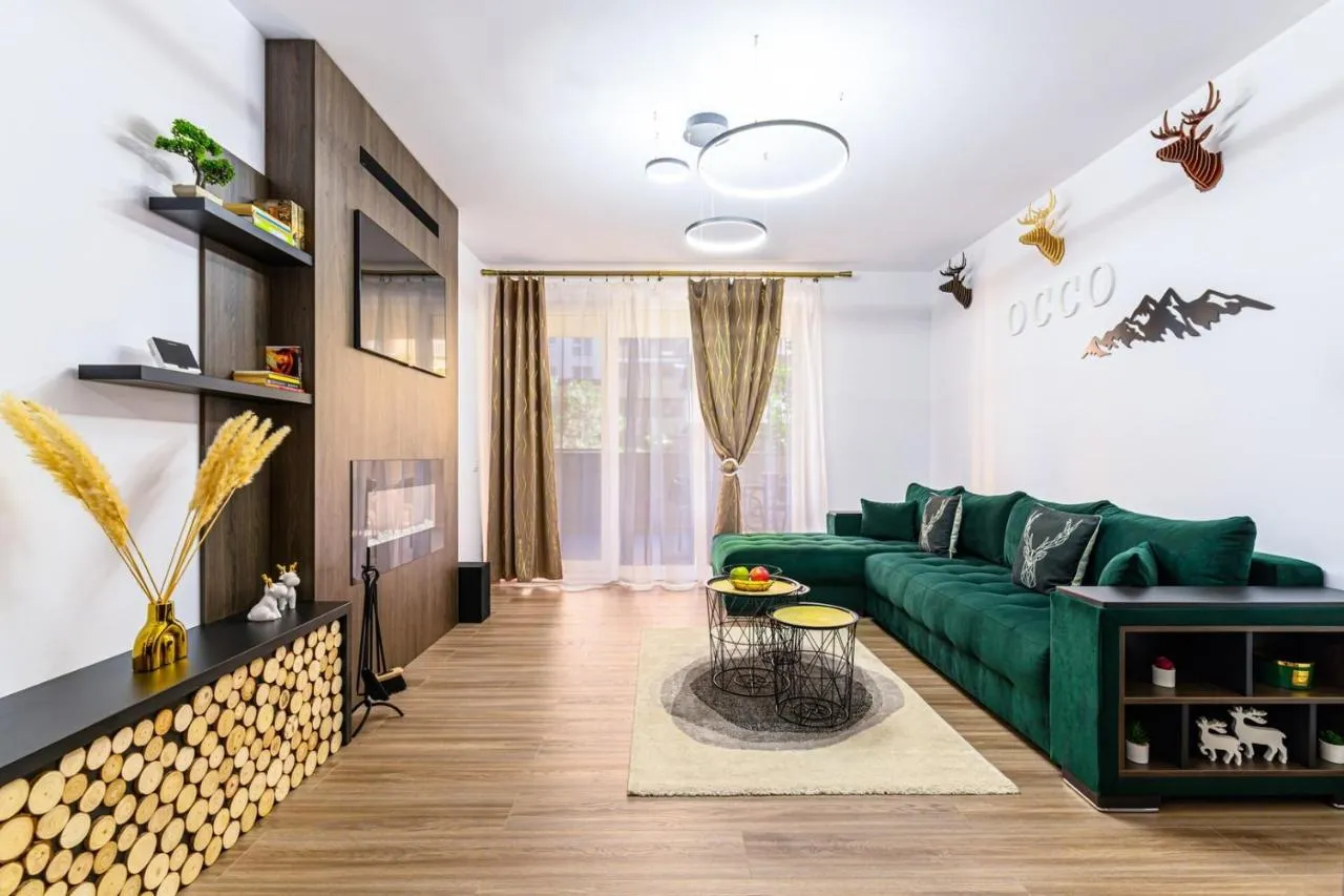 Dimensiuni: 81 mp Numar de camere: 2 camere Guests will have a special experience as this apartment features a fireplace. Featuring a private entrance, this air-conditioned apartment is comprised of 1 living room, 1 separate bedroom and 1 bathroom with a walk-in shower and a bath. The well-fitted kitchen features a stovetop, a refrigerator, kitchenware and an oven. The spacious apartment offers a minibar, a tea and coffee maker, a dining area, a wardrobe and a flat-screen TV with streaming services. The unit offers 3 beds.