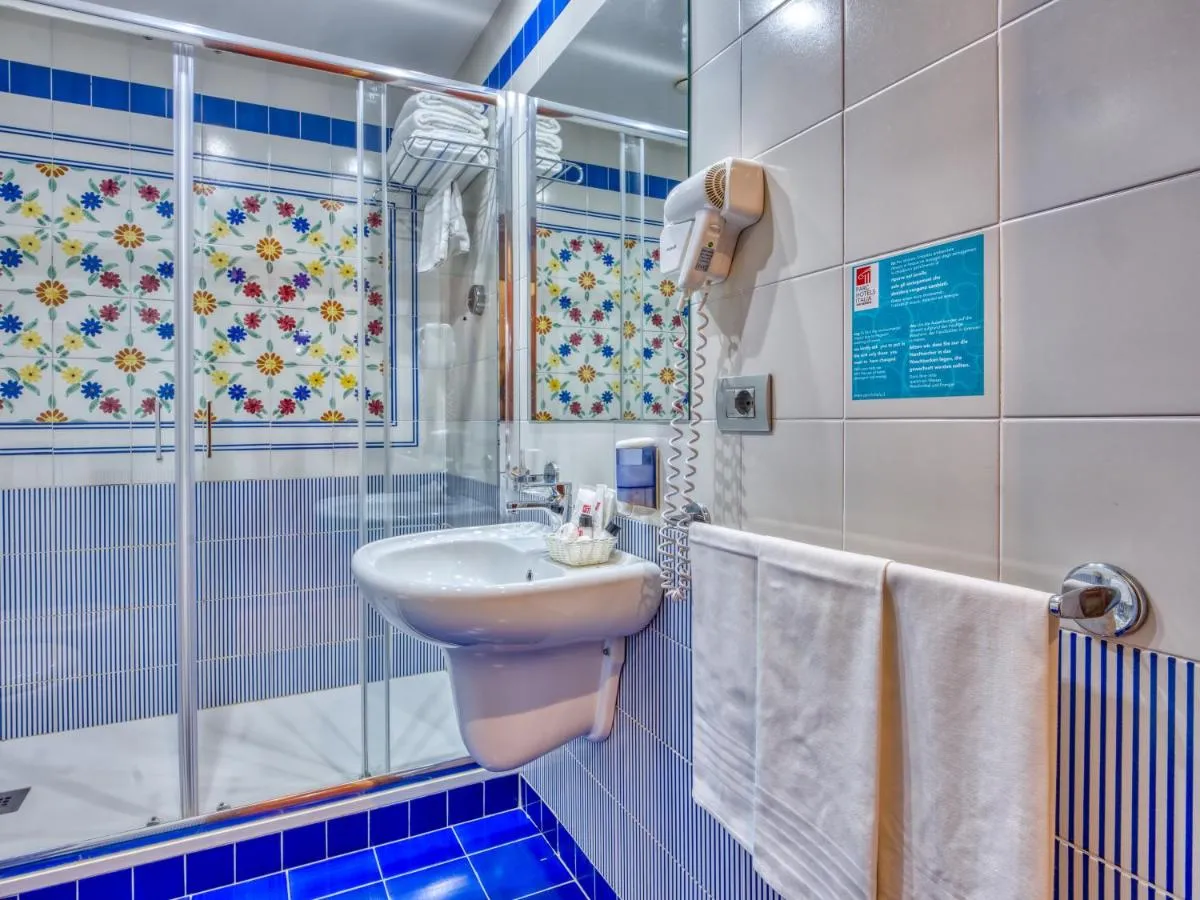 Baie: Halat de baie Prosoape Articole de toaletă gratuite Cadă sau duş Uscător de păr Toaletă bideu Hârtie igienică Baie privată General : Seif Pardoseală de gresie/marmură Aer condiţionat Accesibilitate: Etaje superioare accesibile cu liftul Media/Tehnologie: TV cu ecran plat TV Telefon Canale prin satelit Servicii: Serviciu de trezire Zonă de living: Canapea Exterior: Mobilier de grădină Balcon Mâncăruri și băuturi: Aparat pentru prepararea de ceai/cafea Minibar Bucătărie: Cană fierbător Facilităţile camerei: Canapea extensibilă Distanțare fizică: Aer condiționat individual pentru fiecare cameră de la proprietate Dormitor: Garderobă sau dulap