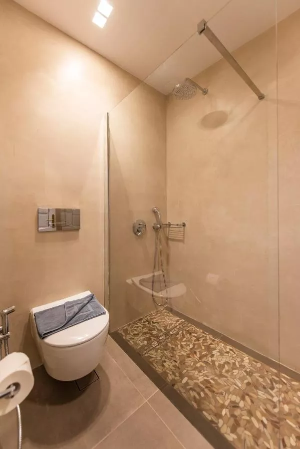 Dimensiuni: 35 mp Numar de camere: 2 camere Guests will have a special experience as this suite features a pool with a view. Featuring a private entrance, this air-conditioned suite is comprised of 1 living room, 1 separate bedroom and 1 bathroom with a shower and a hairdryer. Boasting a terrace with sea views, this suite also offers soundproof walls and a flat-screen TV with cable channels. The unit offers 1 bed. Baie privată cu duș
