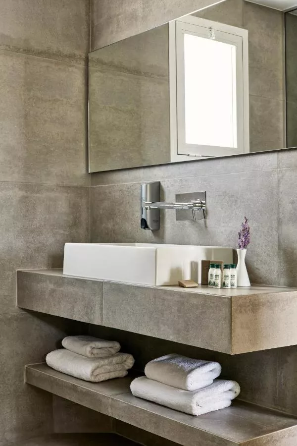 Dimensiuni: 40 mp Numar de camere: 1 camera Această suită include un dormitor separat și o chicinetă în plan deschis, cu living, precum și o terasă mobilată, cu vedere la golful Mirabello. Toate suitele sunt amplasate pe al doilea rând de la malul mării. Baie privată cu duș