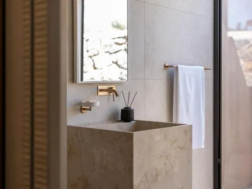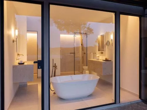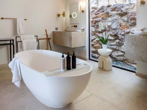 Premium accommodation as elegant as Cape Sounio’s breathtaking natural setting, designed to offer guests a lavish holiday retreat. Baie privată cu cadă