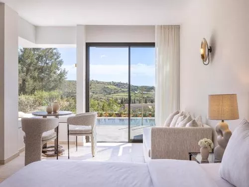 Complexul dispune de bungalouri de culoare teracotă și vile private, amplasate printre alei pavate cu piatră și măslini. Acestea oferă spații generoase de locuit și de luat masa, în timp ce majoritatea se bucură de vederi spectaculoase la mare și la piscină. Facilitățile din cameră includ un televizor cu satelit, un DVD player și halate de baie.