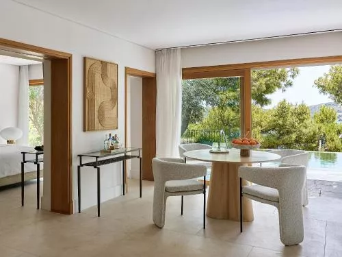 Cu vedere la golful Sounio și situat într-o pădure de pini, Cape Sounio Grecotel Boutique Resort oferă plaje private cu nisip, un centru spa de ultimă generație și mese gourmet într-un cadru luxos.
