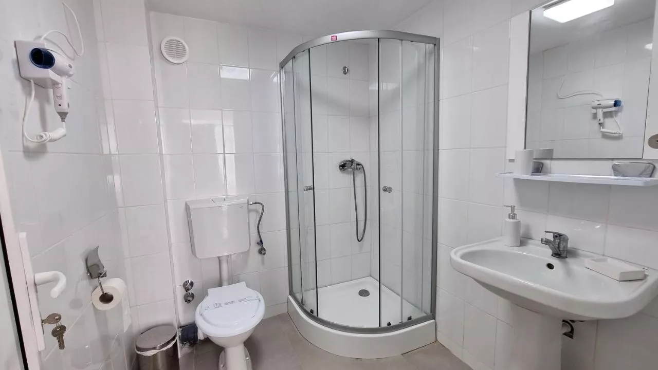 Dimensiuni: 18 mp Numar de camere: 1 camera Providing free toiletries, this triple room includes a private bathroom with a shower. This triple room is air-conditioned and features a flat-screen TV, a seating area and a wardrobe. The unit offers 2 beds. Baie privată cu duș