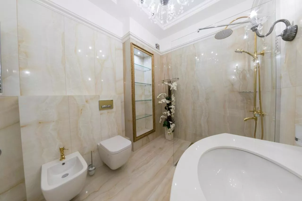 Dimensiuni: 147 mp Numar de camere: 1 camera This spacious apartment consists of 1 living room, 2 separate bedrooms and 2 bathrooms with a bath and free toiletries. Guests can make meals in the kitchenette that is equipped with a stovetop, a refrigerator, a microwave and an electric kettle. This apartment features air conditioning, a washing machine, flat-screen TV with cable channels, as well as wine/champagne for guests. The unit offers 2 beds. Baie privată cu cadă