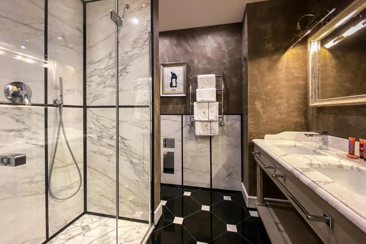 Baie: Halat de baie Prosoape Articole de toaletă gratuite Papuci de casă Uscător de păr Prosoape/lenjerie de pat contra cost Toaletă Duş Hârtie igienică Baie privată General : Seif Fier de călcat Facilităţi de călcat Pardoseală de gresie/marmură Încălzire Aer condiţionat Media/Tehnologie: TV cu ecran plat TV Telefon Canale prin satelit Zonă de living: Canapea Zonă de relaxare Facilităţile camerei: Priză lângă pat Canapea extensibilă Mâncăruri și băuturi: Aparat pentru prepararea de ceai/cafea Minibar Vedere: Vedere Dormitor: Lenjerie de pat Dressing Garderobă sau dulap Bucătărie: Cană fierbător
