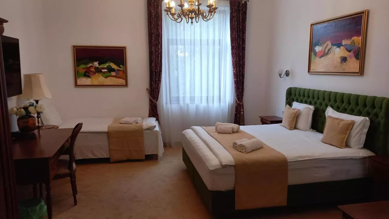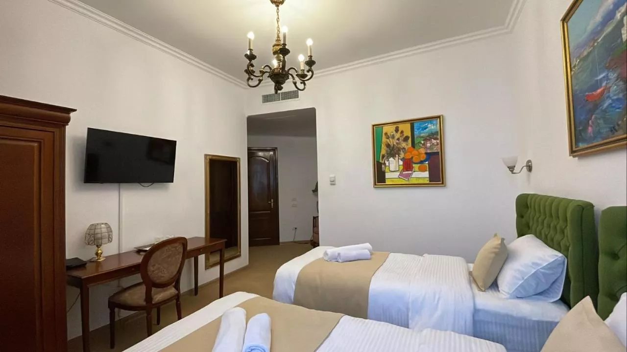 Dimensiuni: 30 mp Numar de camere: 1 camera Această cameră de dublă are o baie privată cu duș, bideu, uscător de păr, halate de baie și articole de toaletă gratuite. De asemenea această cameră dublă spațioasă are pereți izolați fonic, aer condiționat, zonă de relaxare, TV cu ecran plat cu canale prin cablu, minibar și vedere la curtea interioară. Unitatea include 2 paturi.