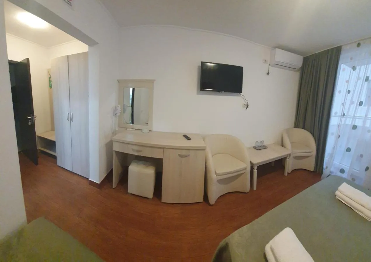 Camerele de la pensiune sunt dotate cu un dulap, un televizor cu ecran plat, o baie privată, lenjerie de pat și prosoape. Casa Corina oferă unele camere cu vedere la mare, iar fiecare cameră are un balcon. Camerele de la această cazare au aer condiționat și mobilier de exterior.