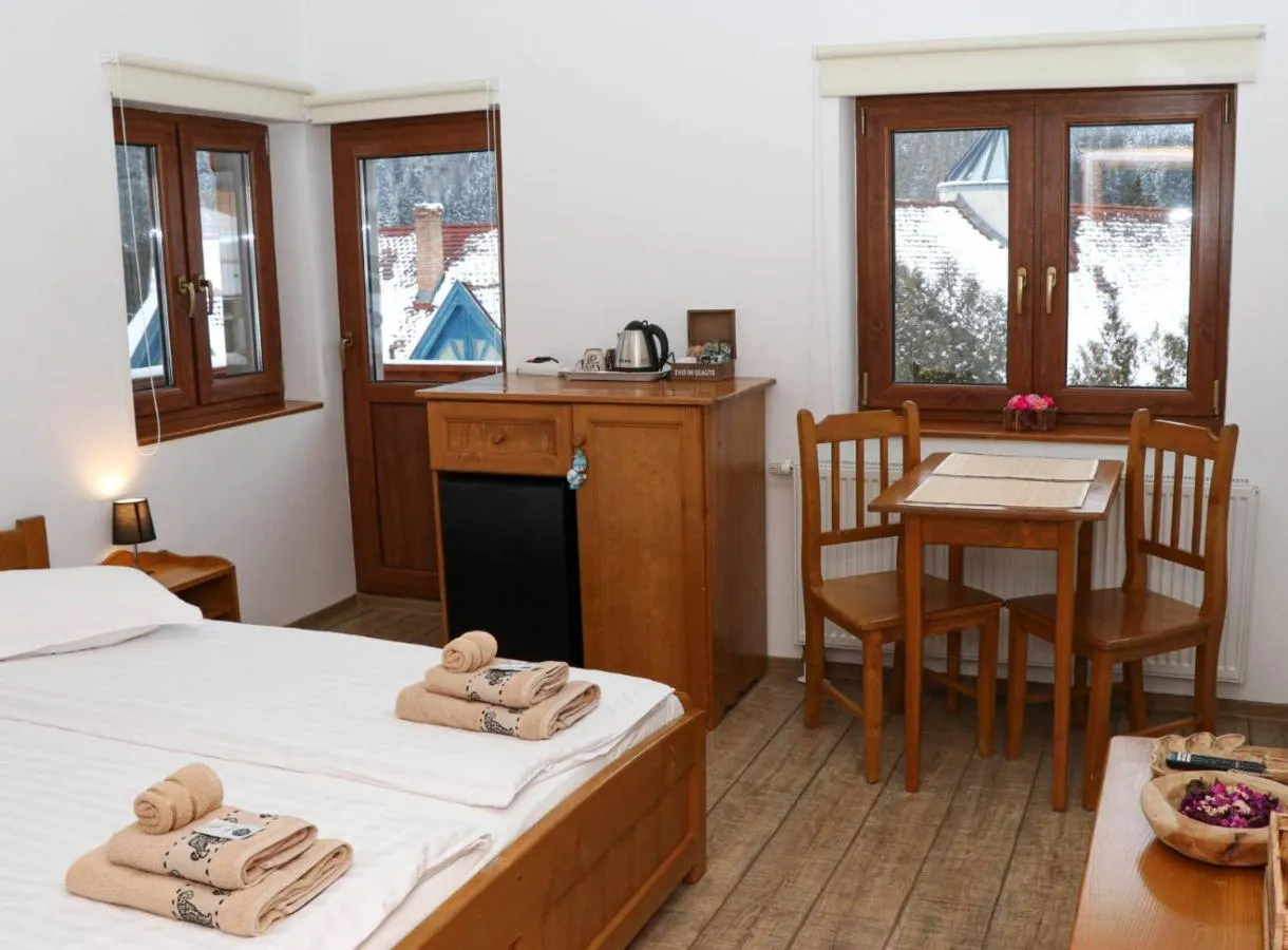 Dimensiuni: 22 mp Numar de camere: 1 camera Offering free toiletries, this double room includes a private bathroom with a walk-in shower and a hairdryer. The double room offers a private entrance, soundproof walls, a minibar, a flat-screen TV with cable channels, as well as mountain views. The unit has 1 bed. Baie privată cu duș