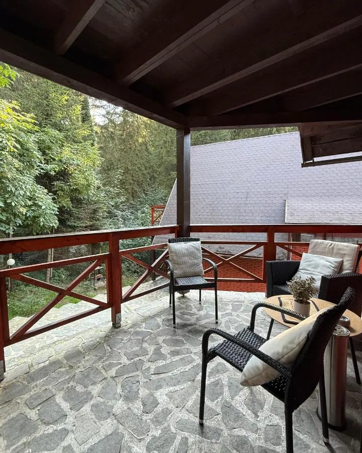 Baie: Baie comună Prosoape Articole de toaletă gratuite Uscător de păr Toaletă Hârtie igienică Cadă Media/Tehnologie: TV cu ecran plat TV Canale prin cablu Canale prin satelit Facilități de siguranță: Purificatoare de aer Vedere: Vedere la munte Vedere la curtea interioară Vedere la grădină Zonă de living: Canapea Exterior: Terasă Balcon Zonă de luat masa în aer liber Bucătărie: Frigider Cană fierbător Bucătărie Dormitor: Lenjerie de pat Dressing Garderobă sau dulap General : Intrare privată Facilităţile camerei: Canapea extensibilă Curățenie și dezinfectare: Dezinfectant pentru mâini