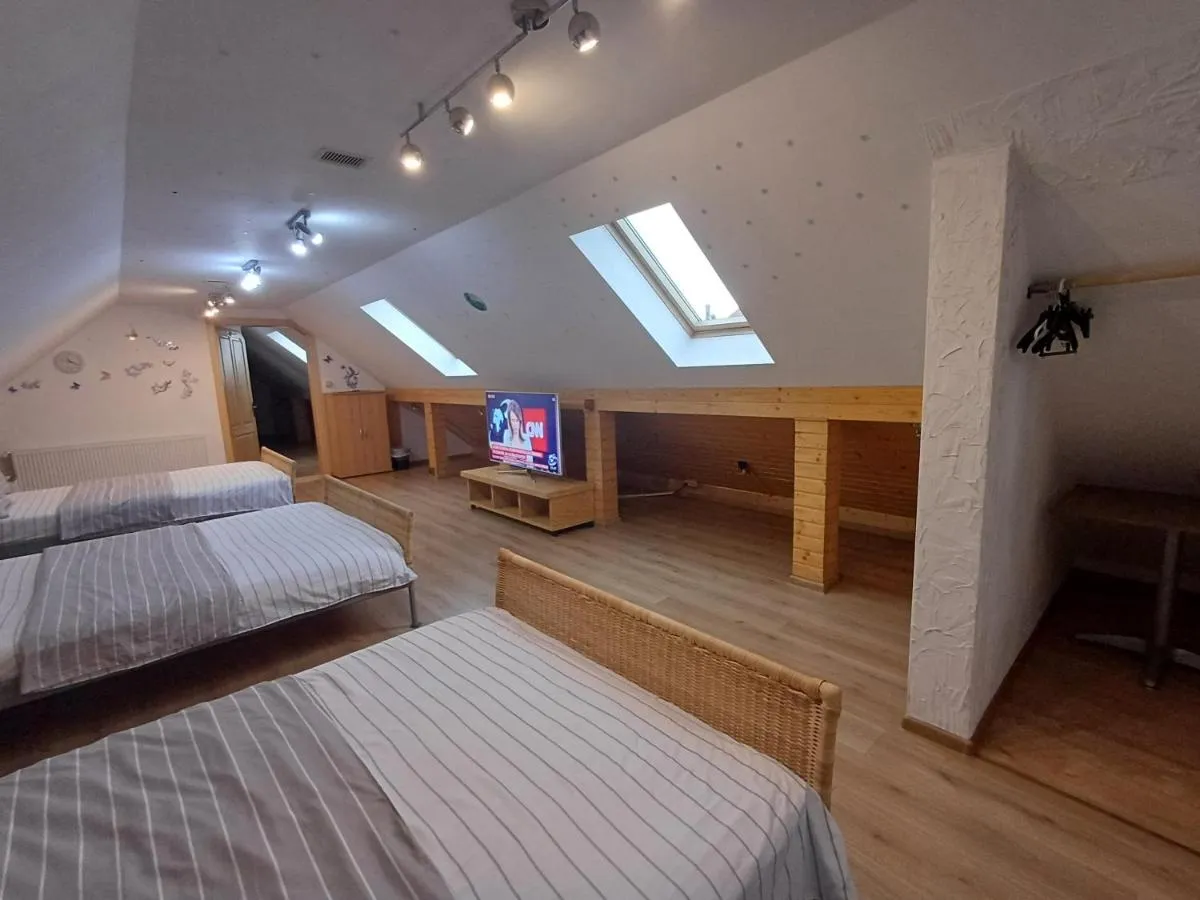 Bucătărie: Mașină de cafea Cuptor cu microunde Frigider Ustensile de bucătărie Cană fierbător Bucătărie Uscător de haine General : Pardoseală de lemn sau parchet Fier de călcat Ventilator Facilităţi de călcat Încălzire Accesibilitate: Etaje superioare accesibile doar pe scări Baie: Baie comună Toaletă comună Prosoape Articole de toaletă gratuite Toaletă suplimentară Papuci de casă Uscător de păr Toaletă Duş Hârtie igienică Media/Tehnologie: TV cu ecran plat TV Canale prin cablu Canale prin satelit Dormitor: Paturi extra lungi (> 2 metri) Lenjerie de pat Garderobă sau dulap Facilităţile camerei: uscător de rufe Priză lângă pat Zonă de living: Zonă de relaxare Exterior: Terasă Grătar Zonă de luat masa în aer liber Divertisment și servicii pentru familii: Jocuri și puzzle-uri Porți de siguranță pentru copiii mici Mâncăruri și băuturi: Aparat pentru prepararea de ceai/cafea Curățenie și dezinfectare: Dezinfectant pentru mâini
