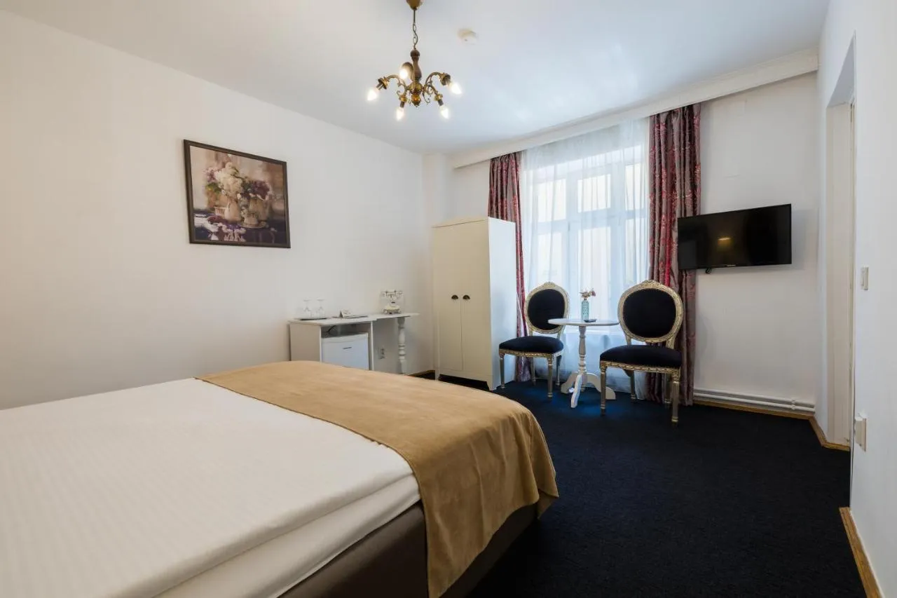 Dimensiuni: 14 mp Numar de camere: 2 camere Această cameră single decorată elegant are un TV cu ecran plat cu canale prin cablu, încălzire centralizată, ferestre izolate fonic și un minibar. Baie privată cu duș