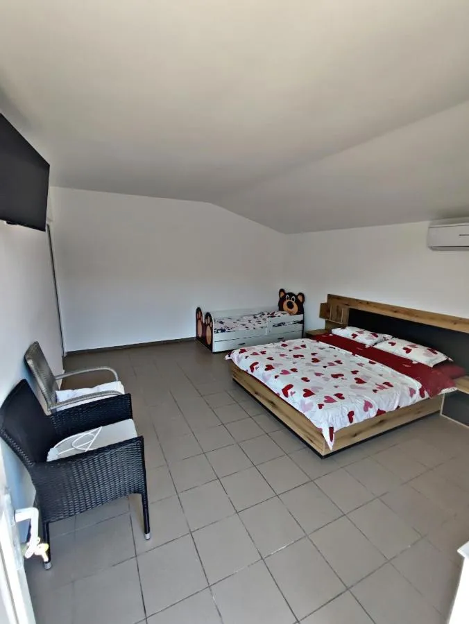 Dimensiuni: 20 mp Numar de camere: 1 camera Guests will find a stovetop, a refrigerator, kitchenware and an oven in the kitchen. The triple room also features a barbecue. This air-conditioned triple room is comprised of a flat-screen TV with cable channels, a private bathroom as well as a terrace with garden views. The unit has 2 beds.