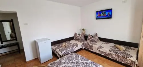 Dimensiuni: 14 mp Numar de camere: 1 camera The quadruple room features a tiled floor and heating, as well as a private bathroom featuring a shower. The air-conditioned quadruple room offers a flat-screen TV with cable channels, soundproof walls, a wardrobe, a barbecue as well as an inner courtyard view. The unit offers 3 beds.