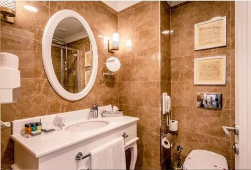 Dimensiuni: 27 mp Numar de camere: 20 camere Offering free toiletries, this twin/double room includes a private bathroom with a shower, a hairdryer and slippers. The spacious air-conditioned twin/double room offers a flat-screen TV with cable channels, a private entrance, a minibar, a seating area as well as city views. Baie privată cu duș