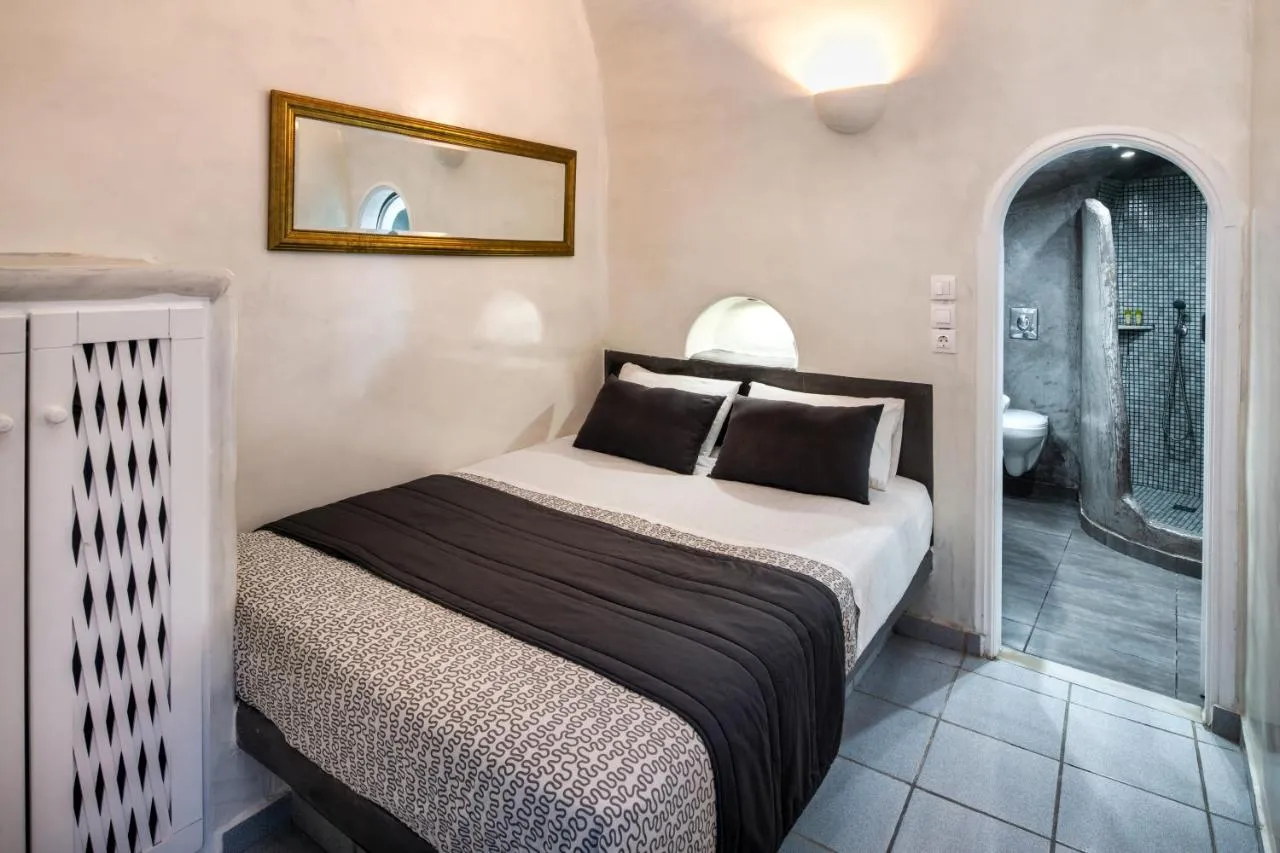 Castelul Katerina - Hotelul Caldera Cave, situat pe stânca din Imerovigli, oferă camere tradiționale cu verande comune care oferă o vedere la Marea Egee, vulcanul, vechiul castel Roca și apusul de soare. Pe locație se află un cadă cu hidromasaj.