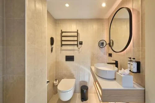 General : Seif Pardoseală de lemn sau parchet Încălzire Aer condiţionat Baie: Toaletă Articole de toaletă gratuite Papuci de casă Cadă sau duş Baie privată Uscător de păr Media/Tehnologie: TV cu ecran plat Telefon Canale prin satelit Servicii: Serviciu de trezire