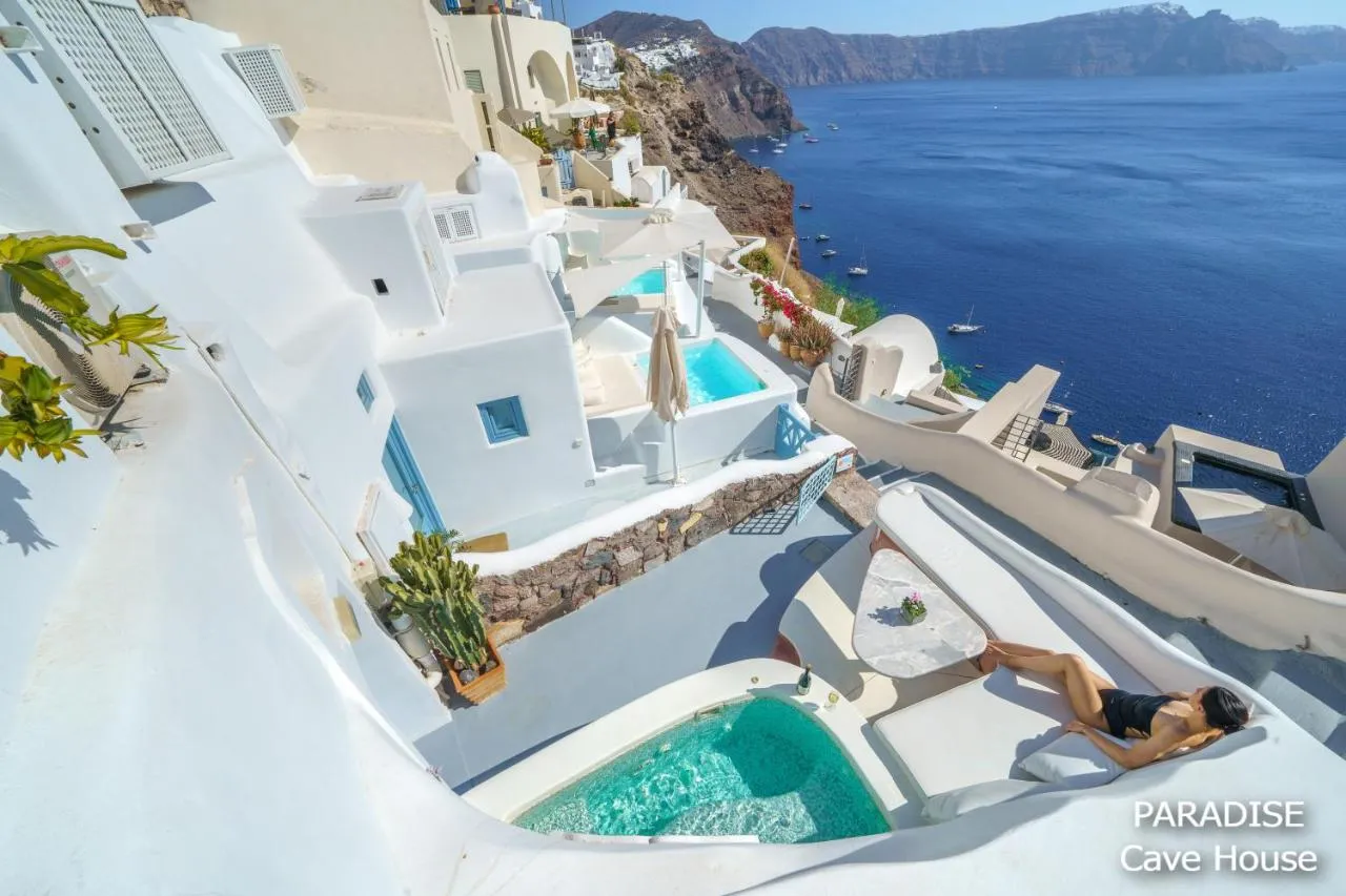 Construite acum 1000 de ani, toate casele sunt mobilate în stilul tradițional al insulelor grecești. Tipurile de cazare cu aer condiționat de la Santorini Paradise dispun de un televizor cu ecran plat și satelit, precum și de o chicinetă cu un mini cuptor sau un cuptor cu microunde. Unele includ, de asemenea, paturi încorporate și un jacuzzi privat sau cadă cu hidromasaj. WiFi gratuit este oferit în întreaga proprietate. Proprietățile sunt decorate cu opere de artă originale.