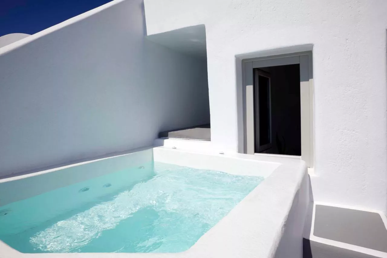 Suită tip peșteră cu piscină de relaxare încălzită și vedere la caldeiră