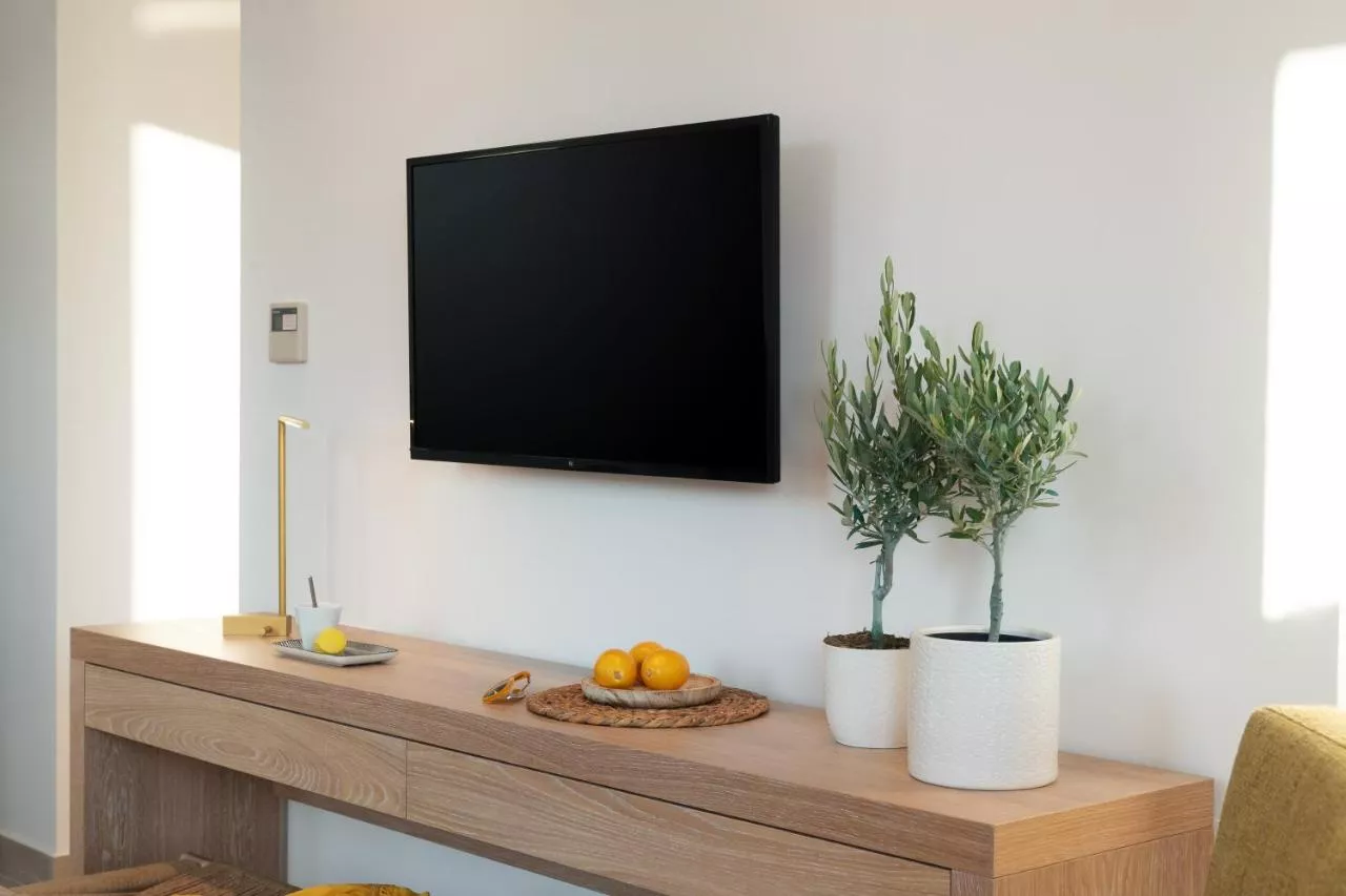 Dimensiuni: 32 mp Numar de camere: 2 camere Această suită are intrare privată, aer condiționat, 1 dormitor și 1 baie cu duș și uscător de păr. Suita oferă pereți izolați fonic, TV cu ecran plat cu canale prin satelit și terasă cu vedere la mare. Unitatea include 1 pat.