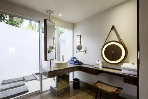 Acest resort izolat pe insulă se află la 25 de minute de Male cu avionul. Oferă cazare pe plajă și peste apă, cu vederi spectaculoase la mare. De asemenea, are un centru de spa și yoga pe locație.