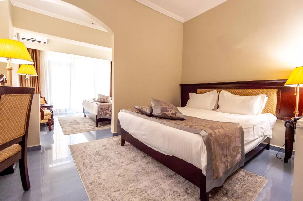 Dimensiuni: 43 mp Numar de camere: 2 camere Suită spațioasă, cu un living separat, cu TV cu ecran plat, și o baie privată cu cabină de duș.