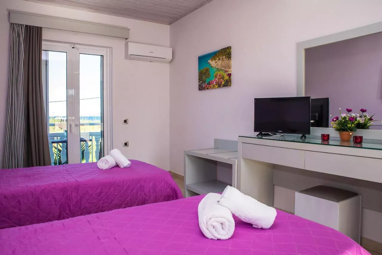 Dimensiuni: 25 mp Numar de camere: 4 camere Opening to a private balcony with Ionian Sea or garden views, this spacious, air-conditioned apartment comes with a kitchen with kettle and fridge. It has a shower and hairdryer, and features a satellite TV. Baie privată cu cadă sau duș