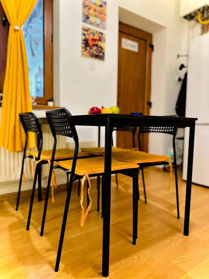 General : Detector de monoxid de carbon Fier de călcat Ventilator Facilităţi de călcat Intrare privată Încălzire Plasă de ţânţari Bucătărie: Mașină de cafea Masă Cuptor Cuptor cu microunde Frigider Plită de gătit Ustensile de bucătărie Bucătărie Uscător de haine Maşină de spălat Accesibilitate: Etaje superioare accesibile doar pe scări Media/Tehnologie: TV cu ecran plat TV Zonă de living: Canapea Zonă de relaxare Facilităţile camerei: uscător de rufe Canapea extensibilă Baie: Prosoape Articole de toaletă gratuite Papuci de casă Uscător de păr Toaletă Duş Hârtie igienică Baie privată Caracteristicile clădirii: Apartament privat în clădire Exterior: Terasă Divertisment și servicii pentru familii: Jocuri și puzzle-uri Vedere: Vedere la curtea interioară Vedere la oraș Mâncăruri și băuturi: Aparat pentru prepararea de ceai/cafea Dormitor: Lenjerie de pat Curățenie și dezinfectare: Dezinfectant pentru mâini