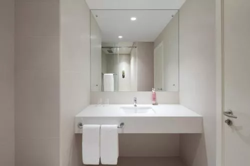 Dimensiuni: 26 mp Numar de camere: 10 camere This spacious 26 sqm Rover Room is equipped with free WiFi Internet access, an 48' interactive flat-screen TV, Universal Power outlets, USB wall sockets, a designer bed by Simmons, a sofa bed suitable for a child, a modern bathroom including power rain showers and hairdryer, multiple electronic sockets and a large and ultra secure safe. Additionally, Rovers can enjoy complimentary water on arrival, coffee and tea-making facilities and a convenient mini fridge. This room is non-smoking. Baie privată cu duș